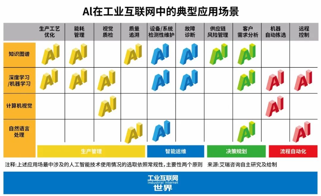 目前,以深度学习、知识图谱、自然语言处理为代表的人工智能技术正处于多方创新和突破的时期,通过与工业领域知识融合的不断加深,AI技术正逐渐加速向工业互联网渗透,在工业企业“研产供销管”业务链条下形成众多落地应用。